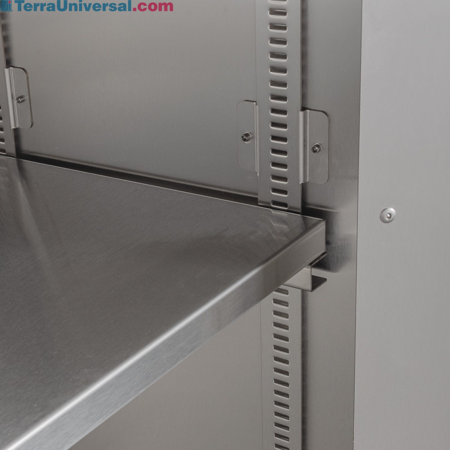 - 304 SS construction wipes down without snags, won't particulate, and has access for easy cleaning
