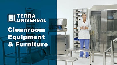 Cleanroom Gowning Procedures: Terra offers a complete line of equipment for cleanroom gowning areas, as well as cleanroom garments, booties, gloves, and cleaning supplies.