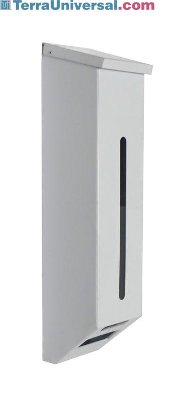 The polypropylene dispenser features swing-open lids for easy loading of gloves, hairnets, face masks and shoe covers. Perforation shows when dispenser is almost empty. Rounded opening prevents snags during retrieval.
