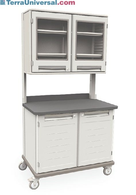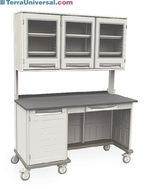 Starsys Mobile Work Center by InterMetro Starsys mobile work center with epoxy resin top, locking base and overhead cabinets easily allows you to adapt to a changing work environment.